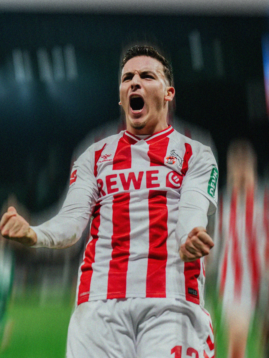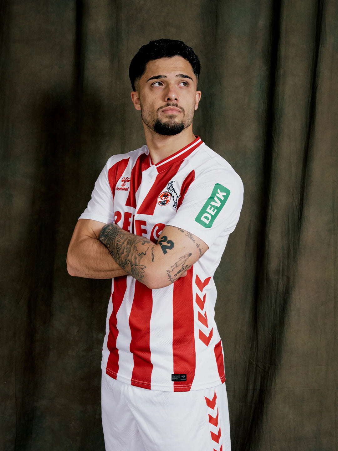 Celebrating tradition with bold red-and-white stripes front and back, the 1. FC Köln 25/26 home jersey is crafted from 100% recycled polyester and features a camo-inspired jacquard knit. A ribbed collar with contrast stripe, side chevrons, and iconic club detailing including a printed back-neck logo and '1948' on the neck tape complete the look. Engineered for performance with Beecool technology for breathability and comfort.