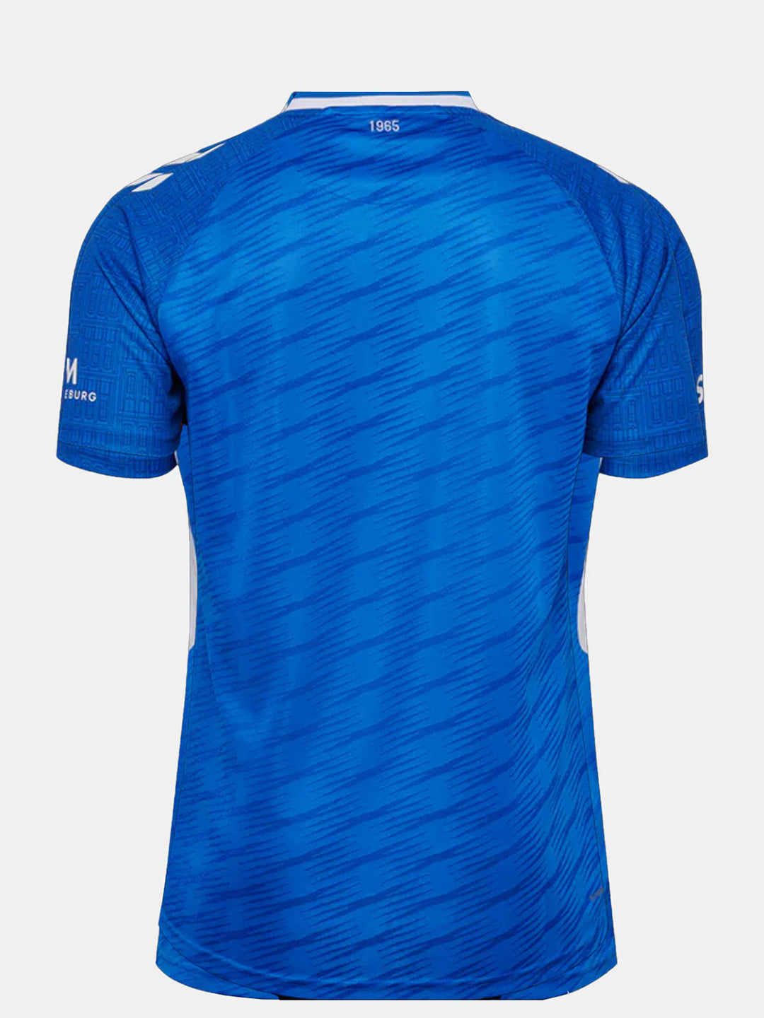 The 1. FC Magdeburg Home Jersey reflects the club’s proud heritage with a blue design and white contrast details. The sublimated pattern on the sleeves is inspired by the Ernst-Thälmann Klubhaus, a symbol linked to the city’s history. Made from 100% recycled polyester with Beecool technology, the jersey ensures comfort and performance. Club identity is highlighted with the printed crest in the neck mirror, “1965” print in the neck, and “22. Dezember 1965” on the neck tape — marking the foundation date of 1. FC Magdeburg. Signature hummel chevrons complete the look.