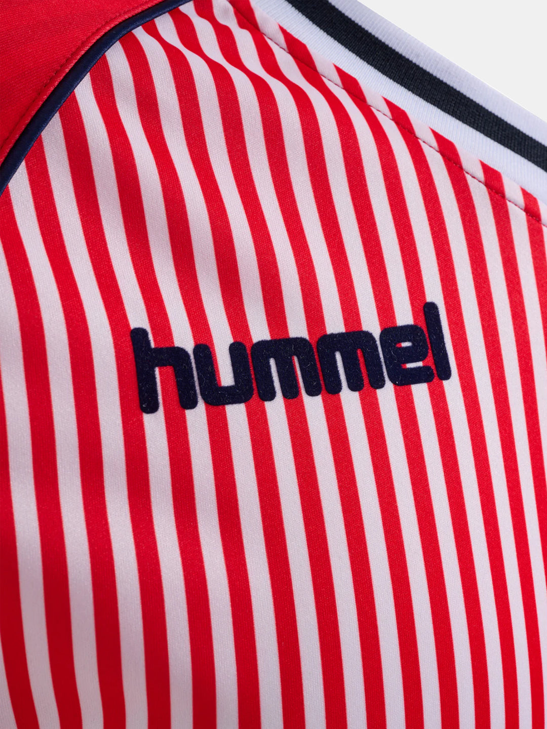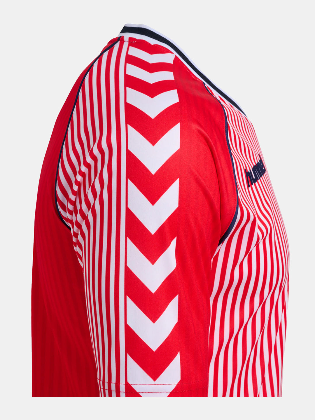 Relive a historic moment in Danish football with the DBU 86 REPLICA Jersey S/S. Inspired by the legendary away jersey from the 1986 World Cup, this iconic shirt is back for devoted fans. With its authentic design, ribbed neckline, and piping details, it stays true to the original. Made from 100% polyester with an all-over print on both the front and back, it features a 3D-printed DBU logo and club badge. A must-have for anyone looking to celebrate football history!