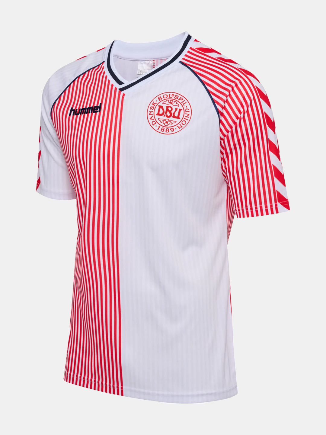 Relive a historic moment in Danish football with the DBU 86 REPLICA Jersey S/S. Inspired by the legendary away jersey from the 1986 World Cup, this iconic shirt is back for devoted fans. With its authentic design, ribbed neckline, and piping details, it stays true to the original. Made from 100% polyester with an all-over print on both the front and back, it features a 3D-printed DBU logo and club badge. A must-have for anyone looking to celebrate football history!