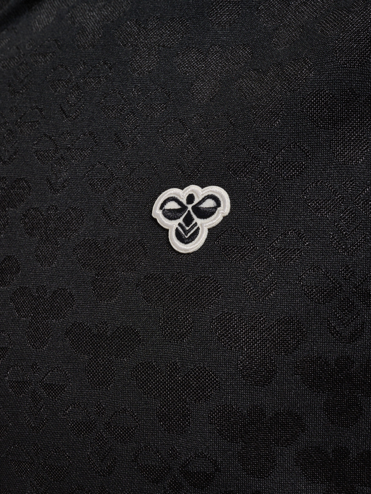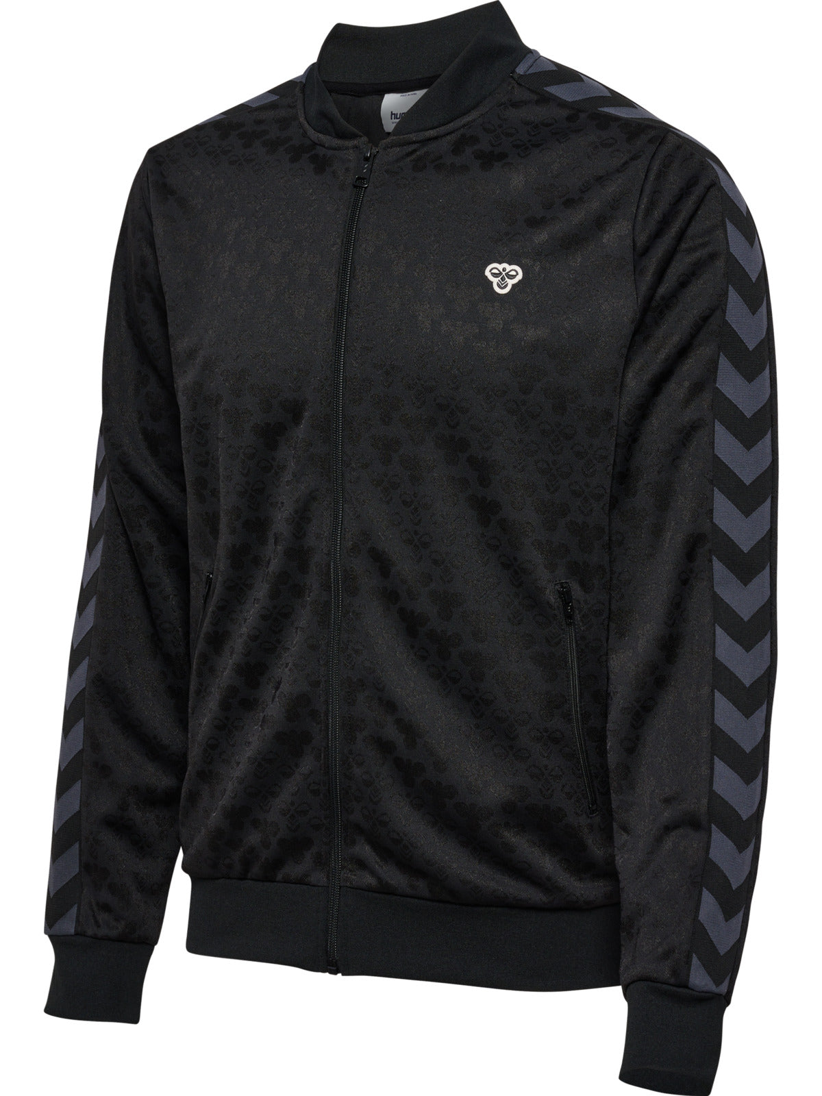 The ARCHIVE REGULAR POLY JACKET AOP is crafted from smooth, soft knitted interlock material. It features a decorative stitched-on hummel logo badge, chevron tape styling on the sleeves, and zipper pockets for secure storage. This jacket offers a unique all over print, and has a full lenght zipper on the front.