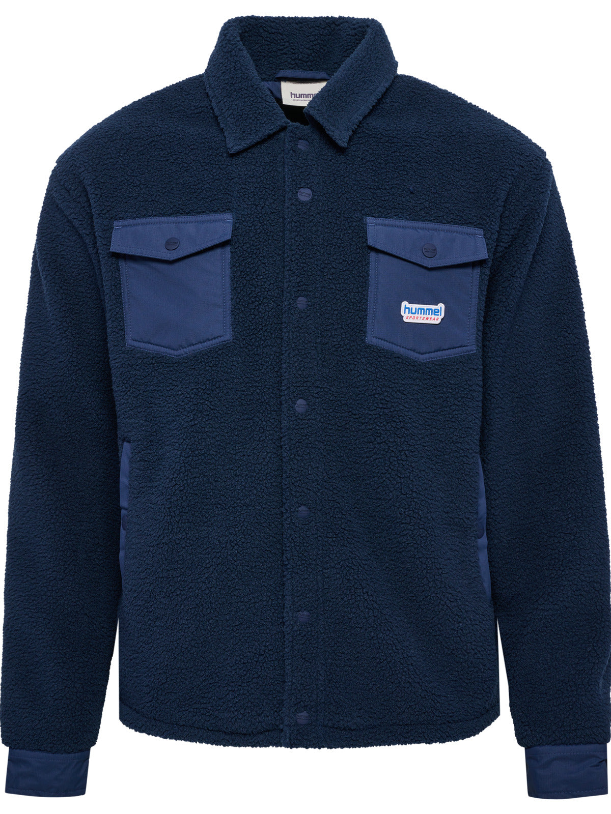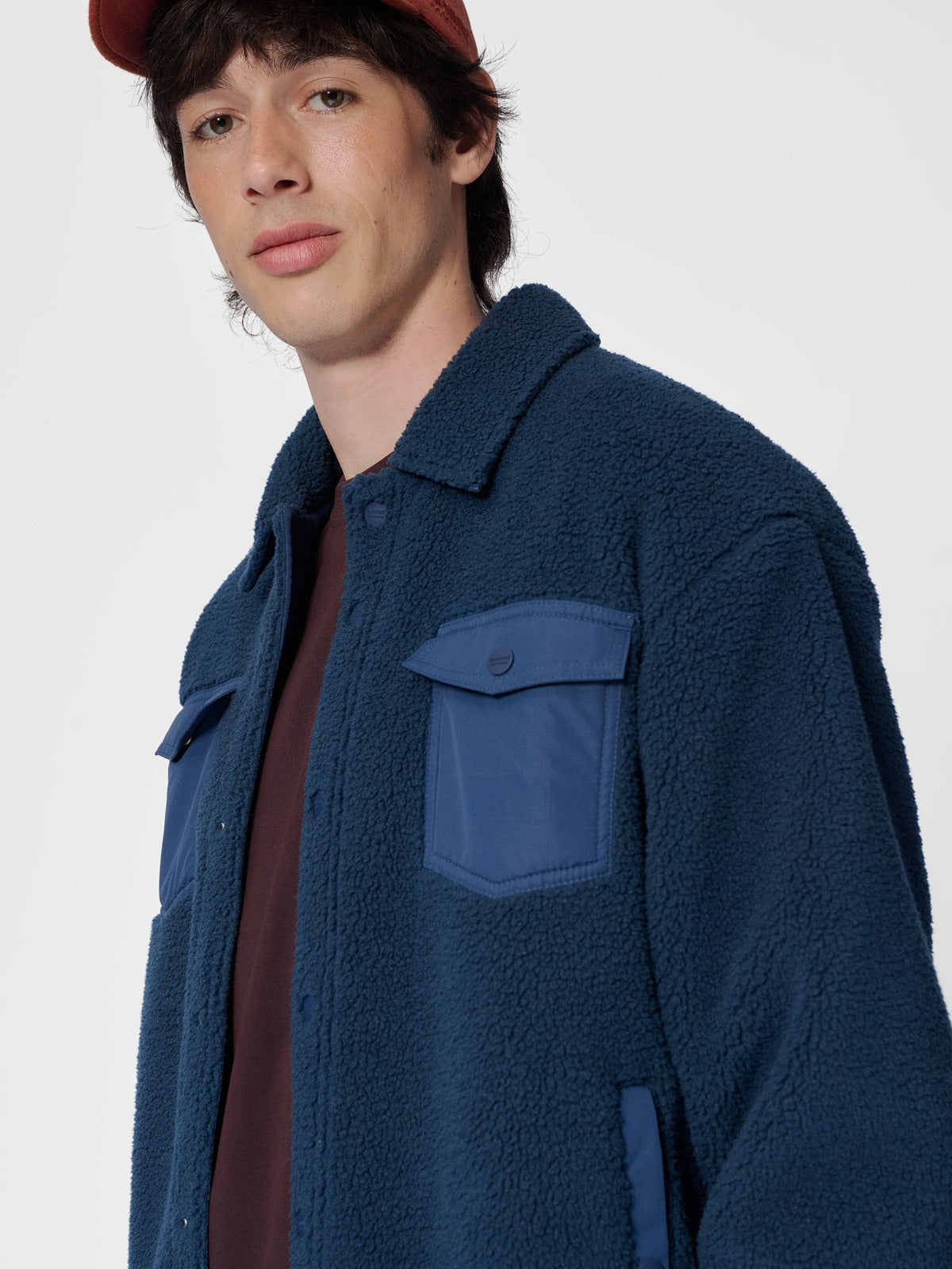 The FLEECE OVERSHIRT SPORTSWEAR is made from a soft and comfortable knitted fleece fabric. It features a turndown collar, two front flap pockets, and a stitched logo at the chest. This overshirt comes in a loose fit. This product is a unisex design.