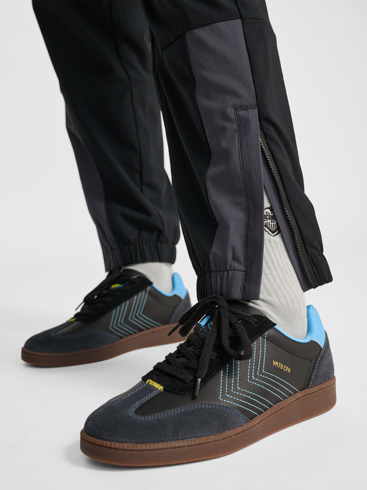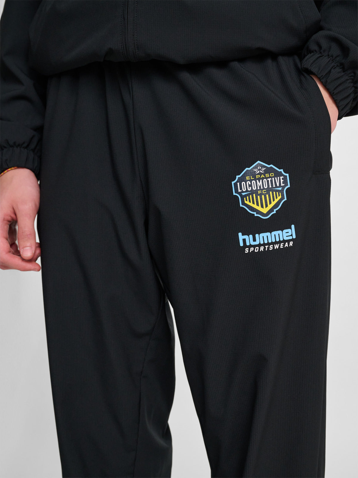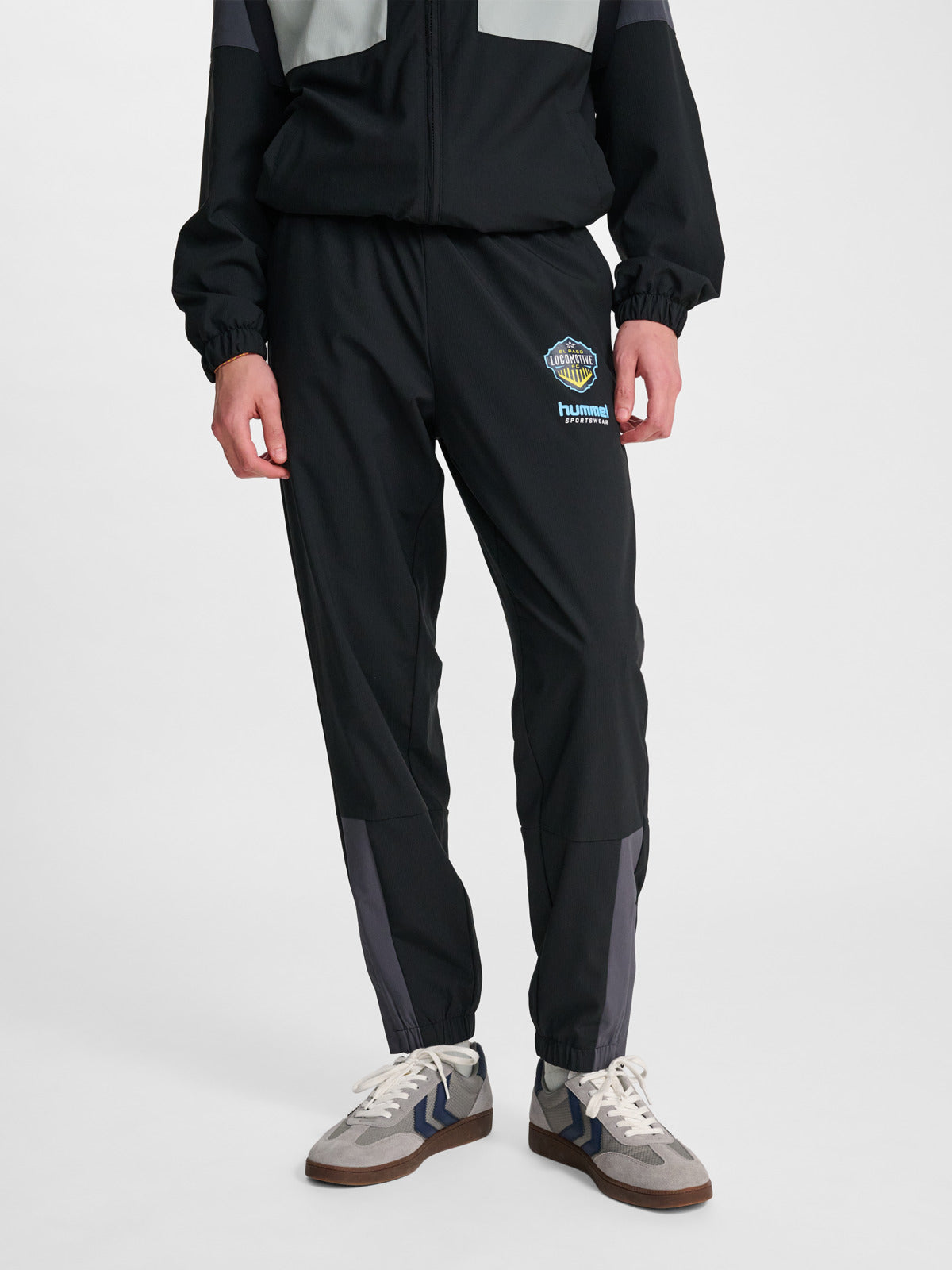 The LOOSE TRACK PANTS SW EL PASO combine classic sportswear style with modern, everyday comfort. Designed in a loose-fitting silhouette, these track pants are crafted from smooth performance fabric that offers ease of movement and a relaxed feel. Featuring an elasticated waistband, ankle cuffs, and ankle zip for a secure fit, along with contrast panel detailing and a bold crest graphic with signature hummel® branding, they deliver a street-ready look rooted in athletic heritage.