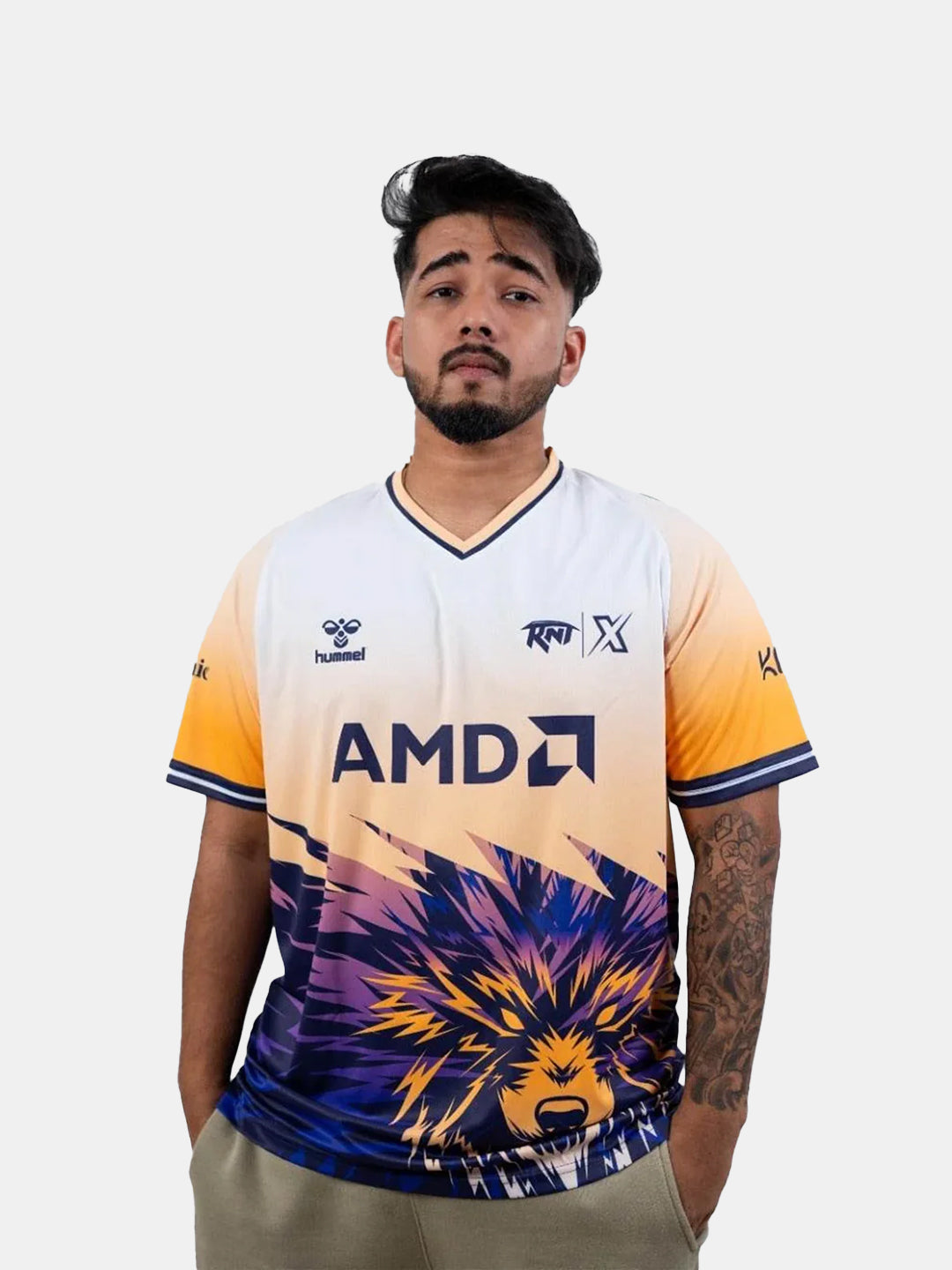 Revenant X spark BGMI pro jersey stands out with its vivid gradient base transitioning from soft white to a radiant golden yellow. The centrepiece of a fierce, stylised wolf graphic in shades of navy, purple, and orange channelling pure energy and team spirit. Designed in high-quality polyester for performance and ease, this piece balances vibrant aesthetics with functionality, making it a collector’s essential for fans and players alike.